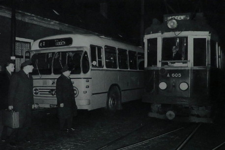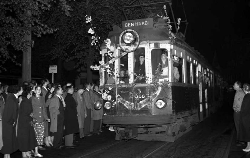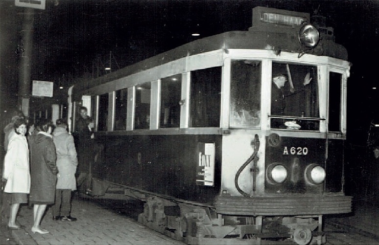 Opheffing van de tramdienst op 9 november 1961 met wagenvoerder A.Nieuwkoop. Fotocollectie: Stichting Historisch Genootschap De Blauwe Tram.