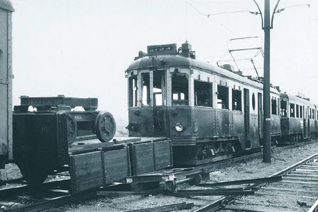 Enkel geleede tramstel, gebouwd bij Beijnes in Haarlem in 1932. Fotocollectie Stichting Historisch Genootschap De Blauwe Tram.