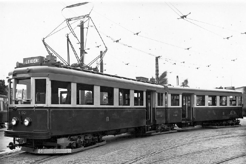 De stoomtramverbinding van Leiden naar Haarlem werd pas eind 1932 elektrisch en werd bediend met een revolutionair ontwerp van tien enkelgelede elektrische trams, ook wel bekend als tweeling-tramrijtuigen.