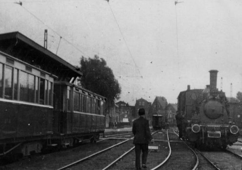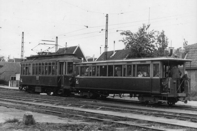 Behalve een overzicht van het emplacement is het bijzondere aan de foto hieronder,de samenstelling van de zichtbare tram. Deze tram bestaat uit twee motorrijtuigen, namelijk de A23 en A16 en een aanhangrijtuig B69,van oorsprong een schakeltramstel afkomstig van Amsterdam-Zandvoort. De A23 is echter niet gekoppeld aan de A16. De zichtbare veronderstelde tramsamenstelling heet in vakjargon AAB. Dit in tegenstelling tot wat gebruikelijk is op de lijn Amsterdam-Zandvoort, daar is namelijk gereden in ABA of ABAA combinaties. Dat de tram zo is samengesteld heeft te maken met het enkelspoorbeveiligingssysteem van Ir.Doyer die in Waterland is gebruikt.