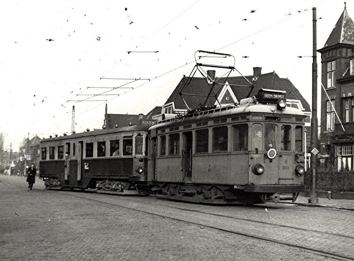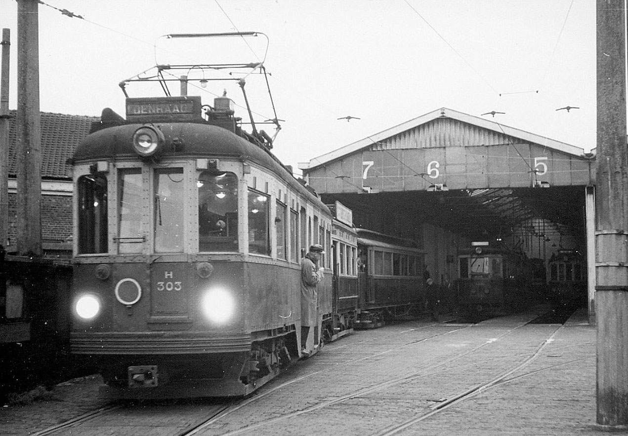 NZH A1052, “De Dwerg” en NZH H 251 op het remiseterrein van Haarlem. Fotograaf onbekend.