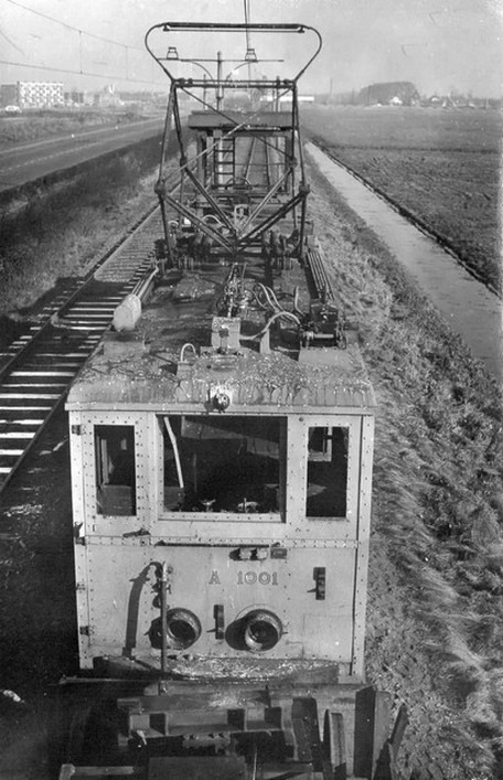Op vrijdag 27 oktober 1961 maakte Hans de Haan deze foto van de A1002 die er hier een beetje verlaten bijstaat aan het eind van het zijspoor aan de Korte Vliet in Voorschoten. Ruim twee weken later zou het hier vol staan met trams na de opheffing van de laatste tramlijn van de NZH. Overigens is de A1002 hier later weer vertrokken, want op en na 13 november 1061 stond deze wagen op het hoofdspoor. Mogelijk heeft de A1002 hier een rit gemaakt met één van de schamelwagens uit de serie H111 t/m/ H114 om alvast wat oude rails af te voeren.