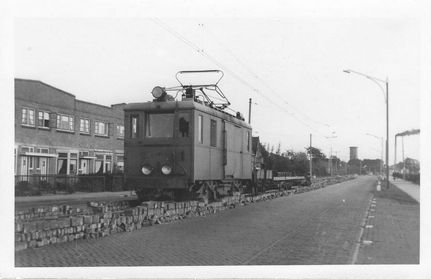 Hillegom, Leidsestraat, enkelspoor in het midden van de weg nabij Elsbroek (onderstation).