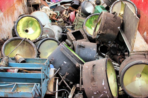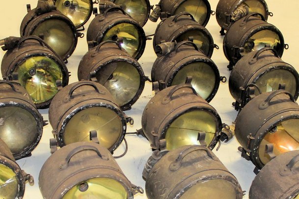 Hoewel het aanvankelijk een bijna ongelofelijk verhaal leek, werd toch spoorslags actie ondernomen. Bij een van de containers konden wij onze ogen nauwelijks geloven: eenentwintig schijnwerpers! De meeste waren beschadigd door de zware metalen voorwerpen die er overheen waren gedumpt. Wij kregen toestemming om de schijnwerpers mee te nemen, evenals vier extra glazen reflectoren, zelfs nog in origineel pakpapier. Veertien schijnwerpers waren nog voorzien van een stekker en op verscheidene exemplaren was met krijt het rijtuignummer geschreven, namelijk afkomstig van materieel serie A 250. Na opheffing van de NZH-tramlijn Amsterdam-Zandvoort in 1957 zijn deze schijnwerpers kennelijk als reserve overgebracht van de remise Leidsevaart in Haarlem naar de werkplaats Rijnsburg. Deze conclusie komt overeen met onze ervaring, die wij opdeden in het najaar van 1961 toen de werkplaats Rijnsburg na opheffing van het trambedrijf was gesloten.